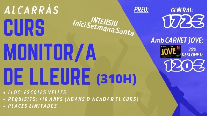 FORMA'T EN L'EDUCACIÓ EN EL LLEURE!! Ara pots fer el curs intensiu en 1 mes.
