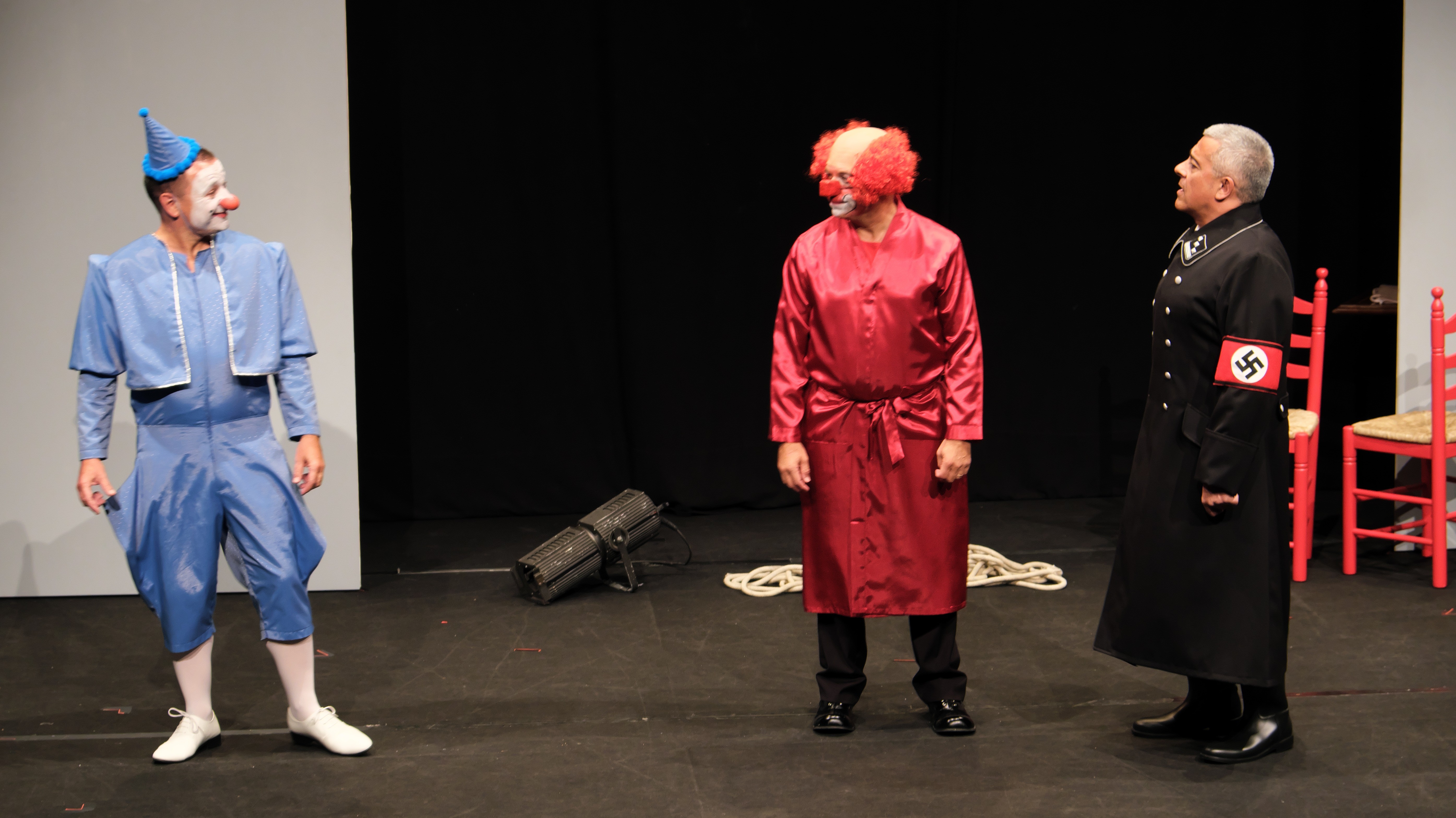 Charlie Rivel ha de complir amb “el contracte” que té amb els berlinesos, però en Witzi i en Golo, utilitzant les seves estratègies clownesques, faran tot el possible per salvar el seu país i la seva dignitat. És una història de pallassos que volen sobreviure a l’horror que els ha tocat viure.