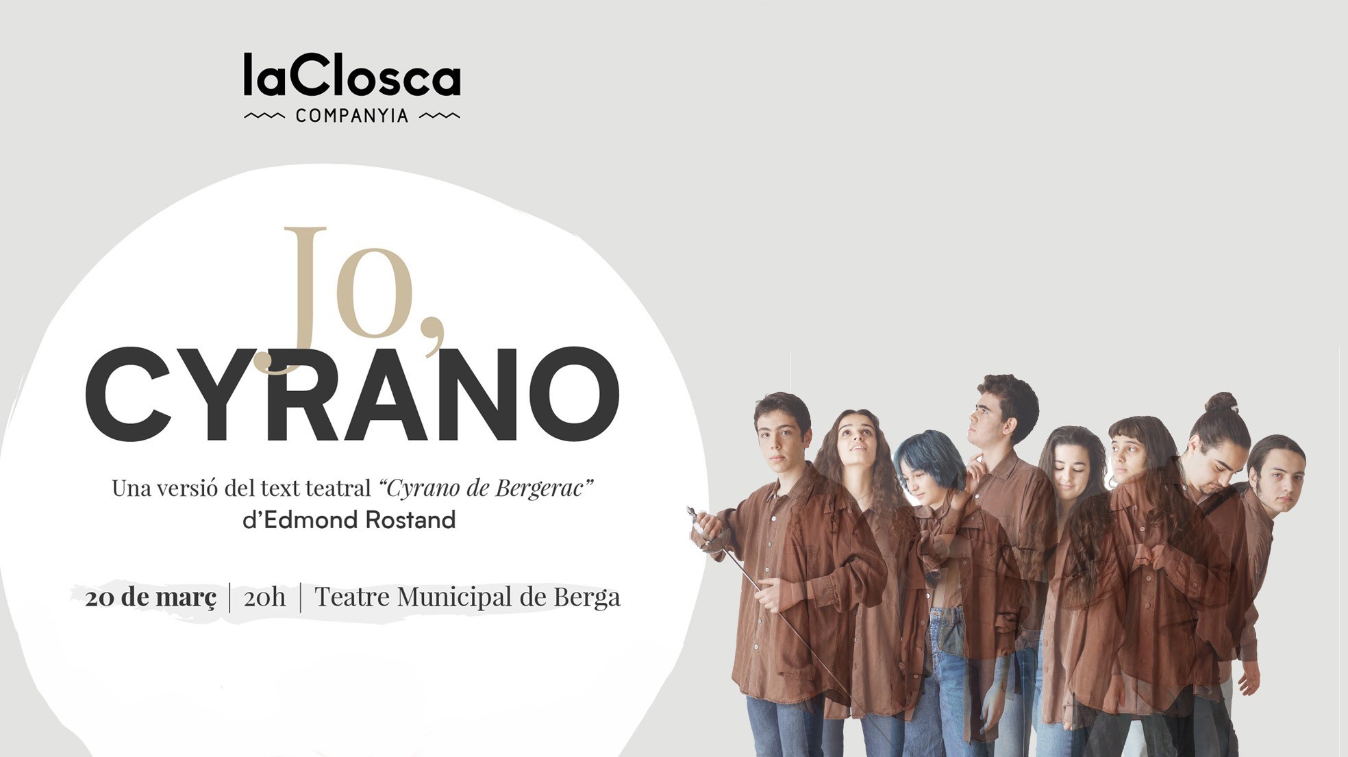 Uns estudiants de teatre, joves, ardents, divertits, juguen a explicar-nos un clàssic que els encanta i els apassiona: Cyrano de Bergerac! Aquesta és la història d’un home especial, atrevit, valent... que camina per la vida amb el barret tort, contemplant l’univers, que li agraden els llibres, la música, el teatre, però sobretot, sobretot, la poesia; escriu poemes cada dos per tres, a cada moment i per cada situació. L’amor pels altres, el desengany i la frustració, la guerra (la física i l’interior), la passió, l’enginy, l’orgull... són els ingredients que configuren aquest entranyable personatge. I tots, tots nosaltres, en som el batec. Jo, Cyrano!